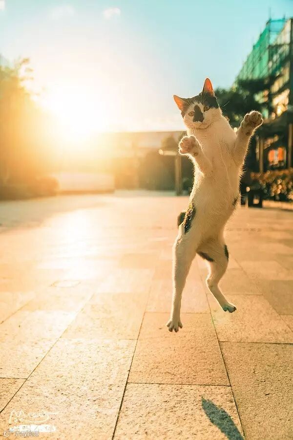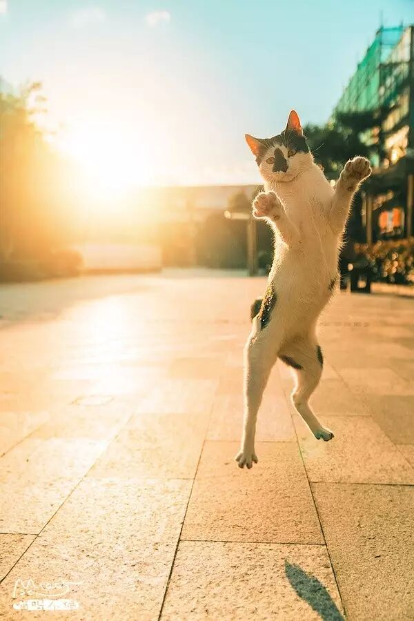 那天送完货,正好路过传奇广场,此前有闻这边有猫出没,便进去试试运气。进来没溜多久就遇见一波,正懒洋洋晒着太阳。学喵引逗都不爱打理,只好拿出看家本领,就地做了一根逗猫棒,这招果然奏效,猫儿们纷纷被吸引。其中属下面这只奶牛最配合,在金光下,随着逗猫棒的韵动,开始了激情尬舞。
