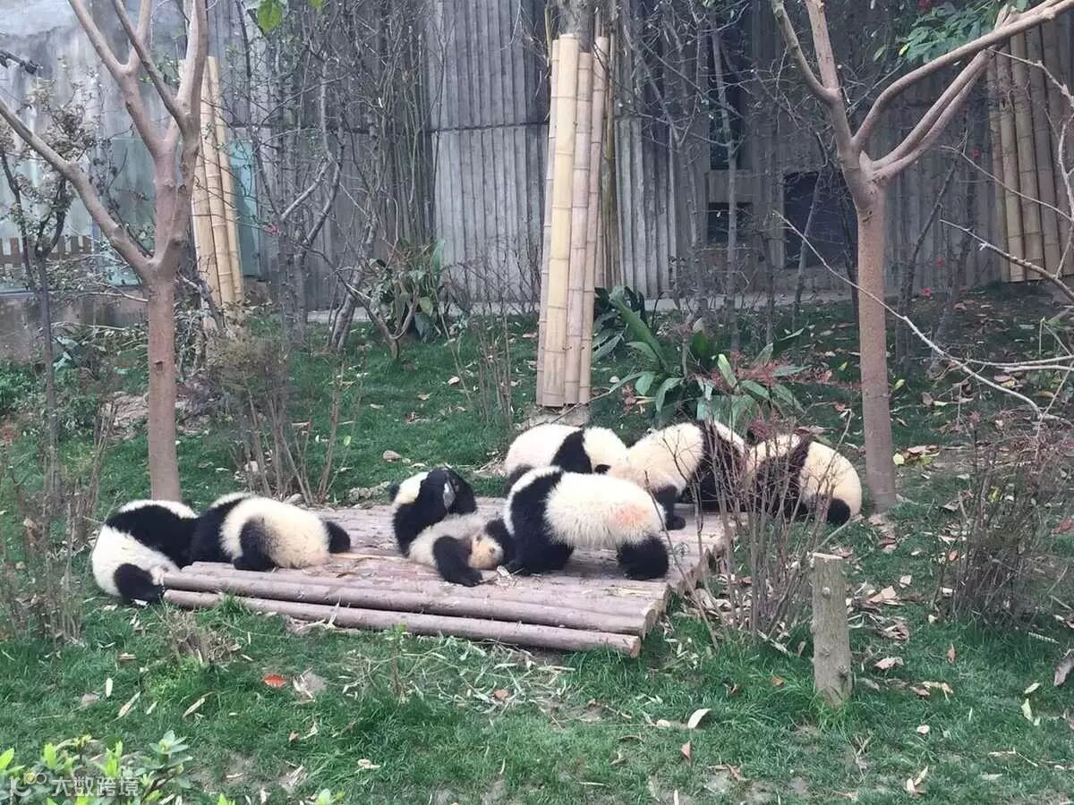 不要问为什么看这么久。因为只有早上凉爽的时候才是小滚滚的活跃期,到了中午和下午小团子们基本上都是睡觉的,一动不动的趴在地上或者树上,肯定没有活蹦乱跳的时候好玩。所以站好你的位置,不要听保安大叔喊:前面看完的往前走。也不要听其他游客说下面还有好多呢。没有了!基地最萌所在就是这里!高萌高喷鼻血地带就是这里!占据了位置以后任谁说都不要走!一直看到小滚滚们基本都趴着或者躺着睡觉了再走(当然如果你看腻了就随意吧)