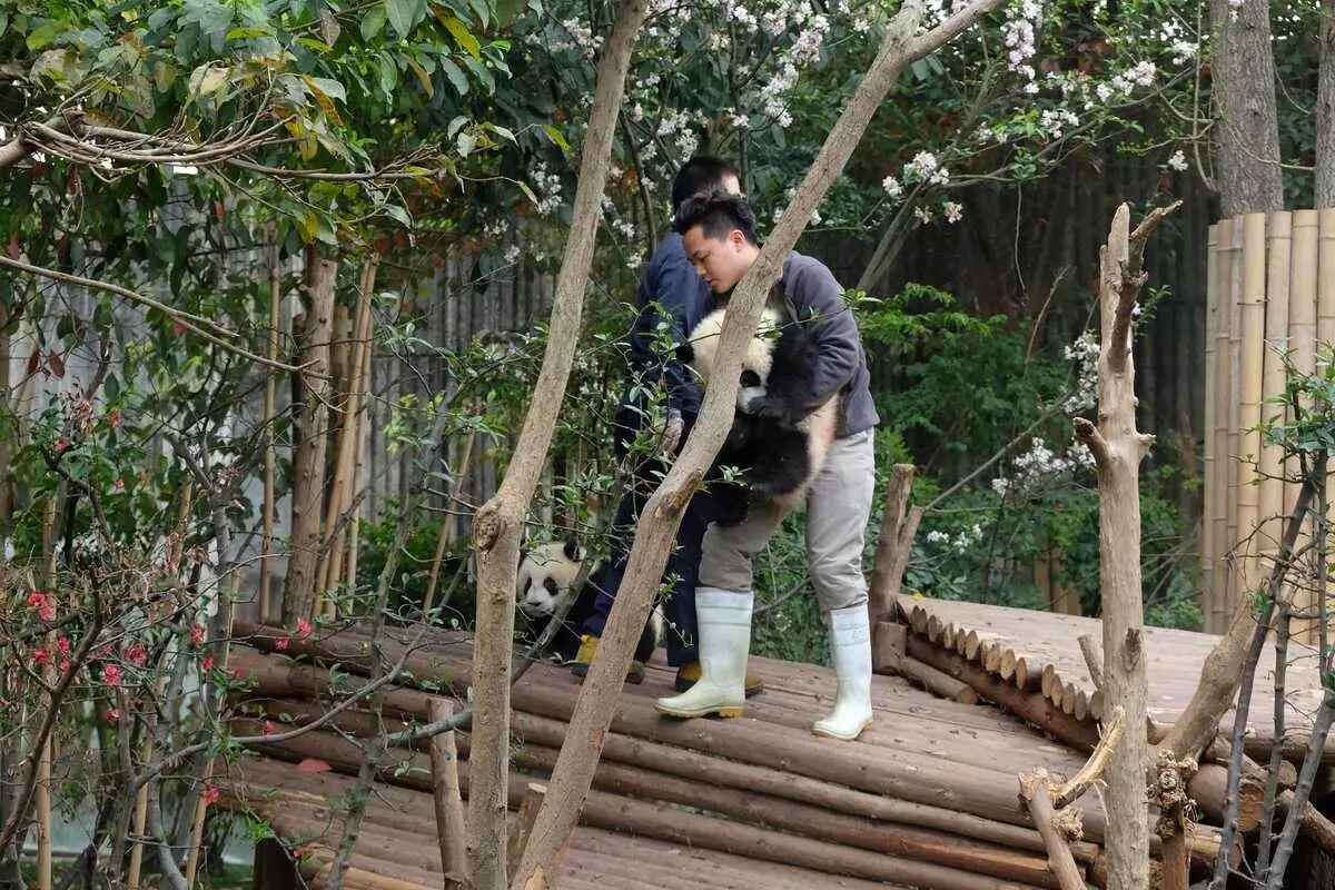 所以进入熊猫基地的第一件事就是,在9:30放小滚滚之前(旺季,节假日,周末建议9点前)赶到月亮产房室外活动室(中间不要停留),占据一个好位置(一般来说是中间,或者直播小哥旁边,直播小哥约9:15左右到,站他附近好上镜哟~)