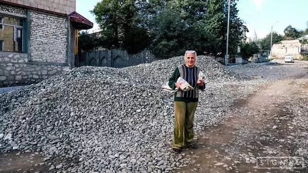 阿拉依克站在离鬼城 Agdam 不远的公路边,低头抽着烟,面朝亚美尼亚的方向,那片土地对于所有留在纳戈尔诺·卡拉巴赫,笃信基督教的人来说,才是真正的故乡。从1988年卡拉巴赫要求脱离阿塞拜疆重新归入亚美尼亚以来,强烈的民族认同感已让无数人为之付出生命。阿拉依克自豪地向我们展示着他的民兵证,只要发生战争,他将义无反顾地冲向前线。一路上,阿拉依克使用最多的象声词就是“嘟嘟嘟”、“砰砰砰”,那是来自武器的声音。在他的手臂上,有一处纹身,四道竖杠中间写着一个大写A。他说两旁的竖道分别代表父母和兄弟姐妹,中间则是他自己。他称呼爸爸妈妈时的语气,像极了一个渴望得到保护的孩子。