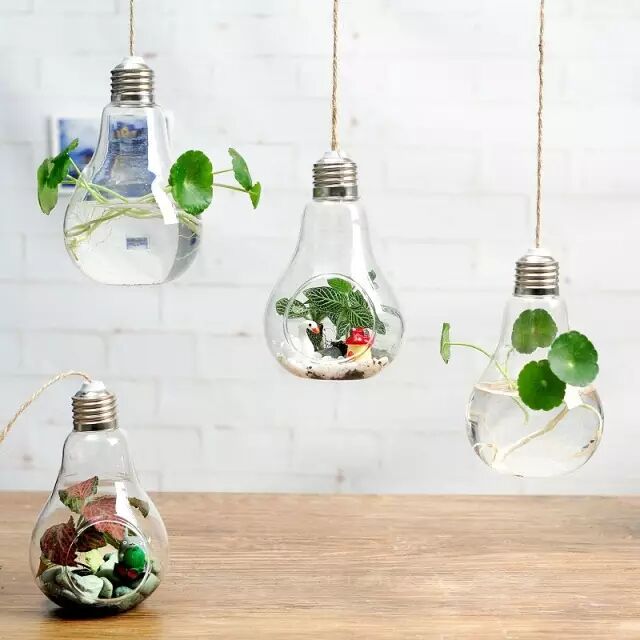 悬挂灯泡欧式创意玻璃花瓶透明水培花瓶玻璃花器现代客厅装饰花瓶