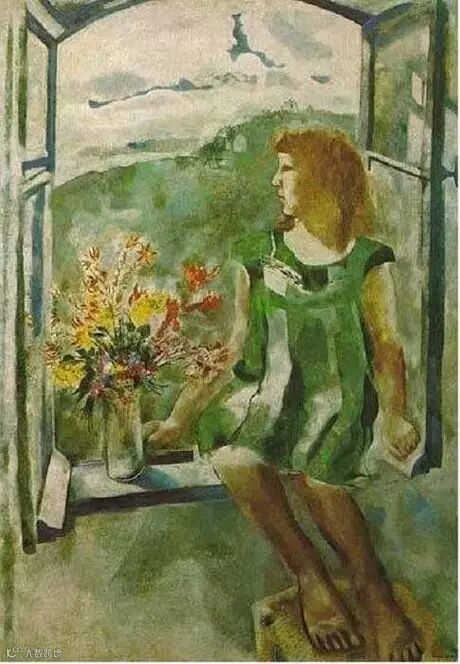 Marc Chagall 室内望向室外窗景的一些画,印象最深是画女儿Ida坐在窗台一幅。窗景一贯有许多内容延展,内外空间隐喻、真实和幻象交织、光线未经过渡的强烈差别、无穷近与无限远,都是精湛的技术和叙事目的互相检验与激发的。我总觉得夏加尔这样叙事独特的画家,像常玉一样,是神品。
