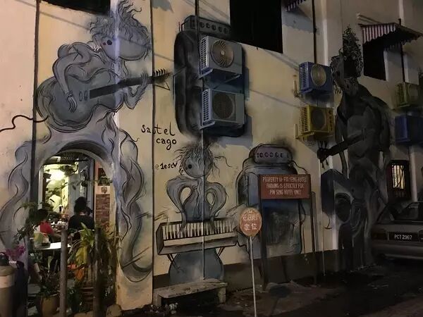 槟城,壁画、人力车、人字形屋顶,都是特色的东西