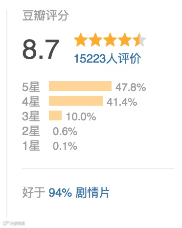 本周的院线片表现亮眼,上榜的十部中有一半都是正在上映的电影。空降冠军的是爱尔兰的动画片《海洋之歌》,这部豆瓣8.8分的电影在去年就已经引起热议,不少影迷都将它选为去年的最佳动画长片。导演继承了前作《凯尔经的秘密》细腻的手绘画风,基调却更加明亮,故事中的饱满情感也在优美的音乐中得以发酵。如果你之前错过了它,千万不要再错过去大荧幕欣赏它的最后机会。