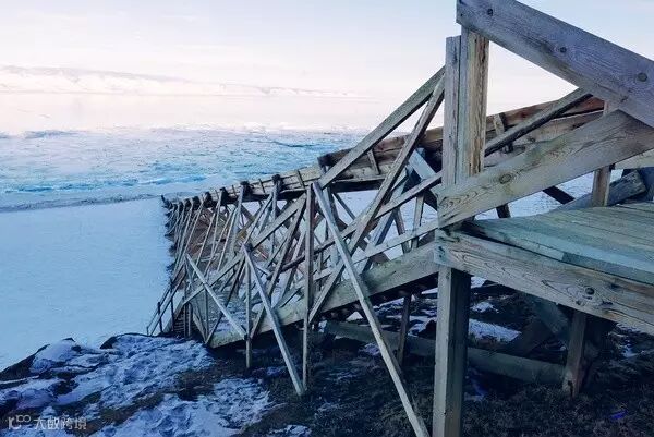 在湖边瞎逛时意外发现的破裂冰层。怕水的学飞听见冰层下汩汩流动的水声,拍完照立马逃走了。