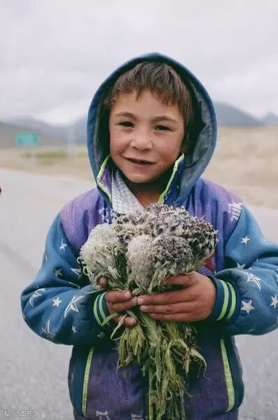 第二天去红其拉甫,路边三个卖雪莲的孩子,冻得一直在跳脚。我们从这个最小孩子手里买了两朵。