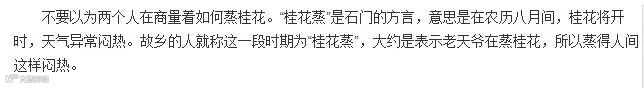 张爱玲有个短篇《桂花蒸阿小悲秋》,不熟悉江浙方言的人可能不知道“桂花蒸”的意思,原来是一个农历八月时间段的称呼。前几天王叔平《五十年艺兰经验谈》,他又提到一个“菱角燥”的说法,猛然觉得“桂花蒸”可以和“菱角燥”可以做一小联。