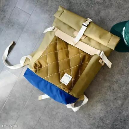 日常是25L容量,展开包盖就可以延展至40L,非常实用!!牛津布可以防水,不怕被雨淋湿被水浇到等等!卡其色系菱格搭配底部钴蓝鲜艳的撞色,少年感十足!