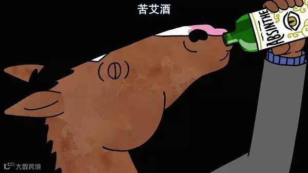 第一张图左一,感谢 @是树不是葡萄 的情报,应该是这种,法国 La Fée 苦艾酒,酒精度68%,太生猛了。