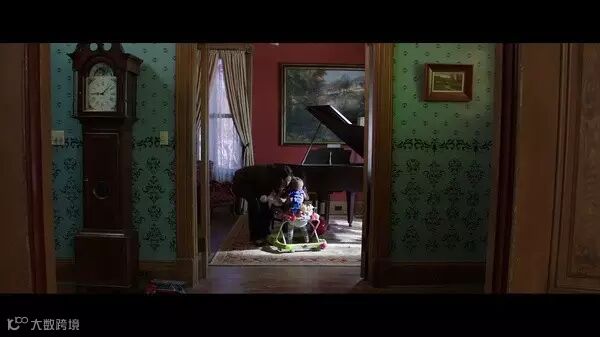下面这个画面,这个看似飘渺、温馨且稍微虚化的儿童房内中全景为什么不会给我们仙境般的感受?因为它在苍白的底色之上,布置了很多红色,正是这些红色,预示了这个场景的魔性和凶恶。它不是仙境,而是魔般的异界深层,关于虐死灵们所携带的那些不堪和痛苦的记忆的。