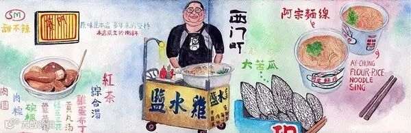 后来又带着这本子去了台湾,但其实在那没画几张,大多是拍了照片后回来画的。台湾印章盛行,所以先在各处盖了章,作为画面的一部分元素保留下来。