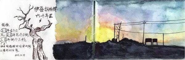 反正就是七零八落的构图,九月我带着颜料和本子回了趟多年没回去过的新疆,可能是回忆比较强烈,或者是因为当地的景致人物特点比较鲜明,突然开了窍似的,画的很放松,而且画的很顺手!开始喜欢这种横向的构图了!体验到了旅行画画的乐趣~
