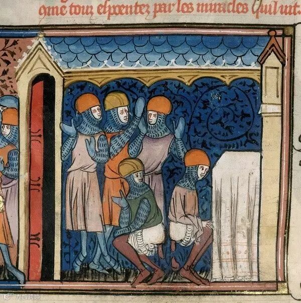 答案是:随便。中世纪早期,欧洲的城镇规模还相当小,人们要么就在街头随地便溺,要么讲究一点的就用桶装起来,倒到街上或者河里去。在人口稀少的乡村,内急问题就更无拘束。不过一个不成文的规矩是“一箭之地”,也就是说解决问题的地点至少要离最近的居所有射箭一程的距离,家里建厕所是难以想象的。解手时离邻居太近,甚至在室内干活,被视作是挑衅和破坏行为。例如图一这张14世纪的手稿插图描绘的就是萨拉森(阿拉伯)士兵在教堂内大便亵渎神圣的场景。