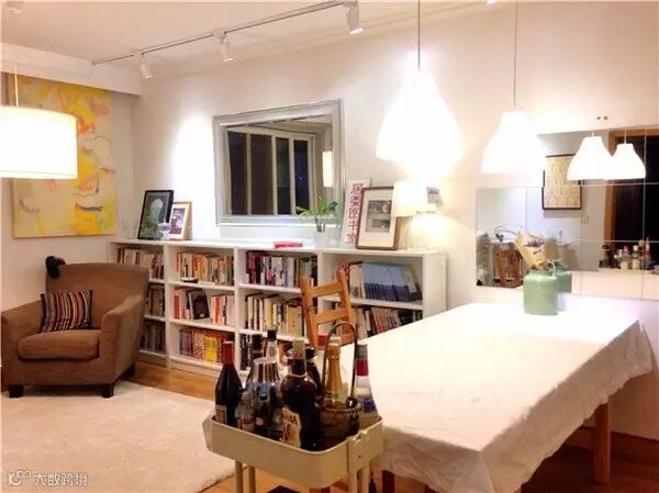 最多的东西就是书,去宜家买了好几个便宜柜子开始摆书,湊合用著,想想客厅比较暗,所以底色还是用个白色好。还要工作,没時間像网上一些神人自己捡旧货来加工裝修,只能直接买新的节省时间。如果你自己买房子,或经济能力强大的话,就别用宜家的了,很多好的北欧家具品牌可选择