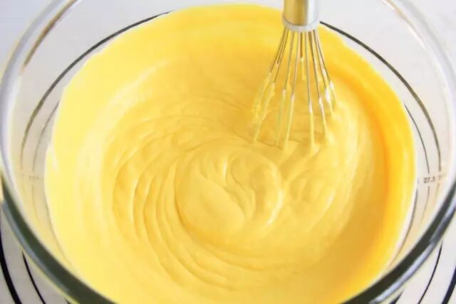 用手动打蛋器搅拌均匀,成为慕斯糊。