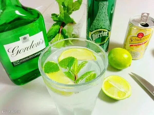 玻璃杯中放入冰块,加金酒和汤力水,然后放上青柠作为点缀。如果是在家里自己做的话,不用太追究比例,按自己喜欢的口感来就好。