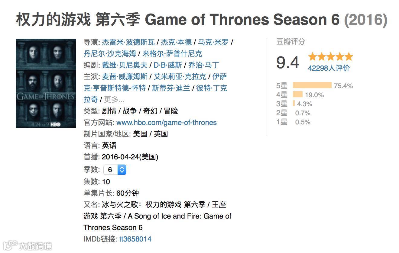 | 《权力的游戏》第六季完美收官 |