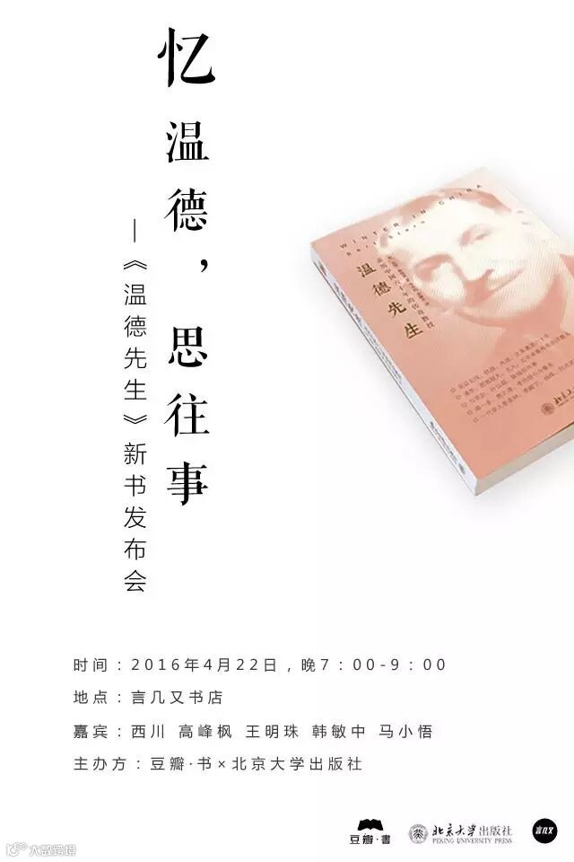 2016年4月22日,当代著名诗人西川、北大英语系主任高峰枫教授,与当年曾在英语系与温德共事的王明珠、韩敏中等诸位教授共忆往事,伯特·斯特恩教授视频参与。欢迎前往一听。