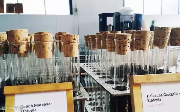 旧金山设计师咖啡馆Front Cafe用试管和木塞装咖啡豆: