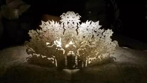 涂完这一张,就一直处于停滞状态,直到有天无意中进到一个专门介绍立体书的网站 ,除了惊奇还是惊奇,感觉新世界的大门被打开了。突然就想到,秘密花园也不止能涂色,它应该有其他玩法,和立体结构结合起来。于是我开始了尝试。