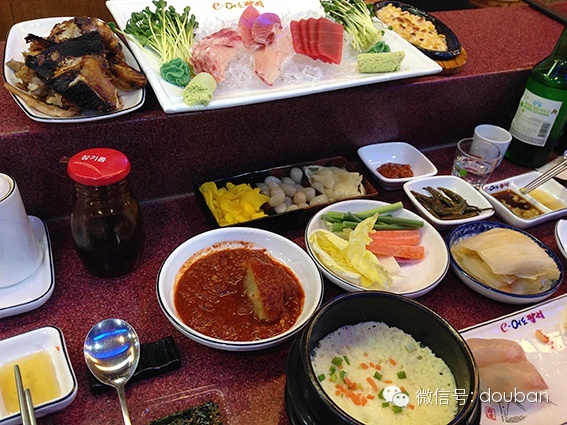 还有很多没有放上来,土豆汤(其实是土豆排骨炖锅),烤鸡脚,冷面烤肉(有的会放冰块),拌饭 ,以及无限量的各种小菜等等~