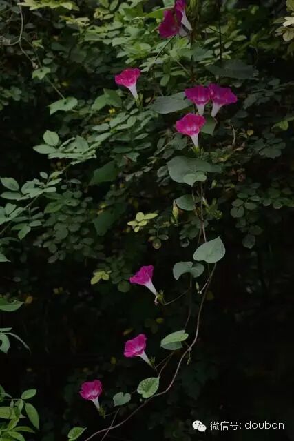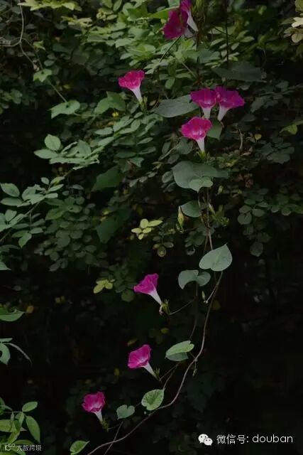 除木槿外,这时节同时盛开的还有牵牛与紫薇。北京街边多有随地而生的牵牛花,在绿色油漆的栏杆边,或用作绿化的卫矛冬青沉闷的篱笆上,常见攀援的牵牛在清晨开放。秋天时如果去郊外,沿路牵牛尤其常见,蓝色的很多。城中多见红色的圆叶牵牛,北京的夏天是一年中难得多雨的季节,有时夜里下过雨,早晨在小区月季与蔷薇繁密杂沓的篱笆上,忽然看见盛开的玫红色牵牛一线牵垂而下,轻薄微皱的花盘下花管如白玉,在阴凉发暗的空气的衬托下,格外沉静而有精神。有时在老小区的窗框上,可以看见人家种的牵牛,一两只瓦盆,已经可以将窗框爬得很满,晴天的上午可有半日花看。
