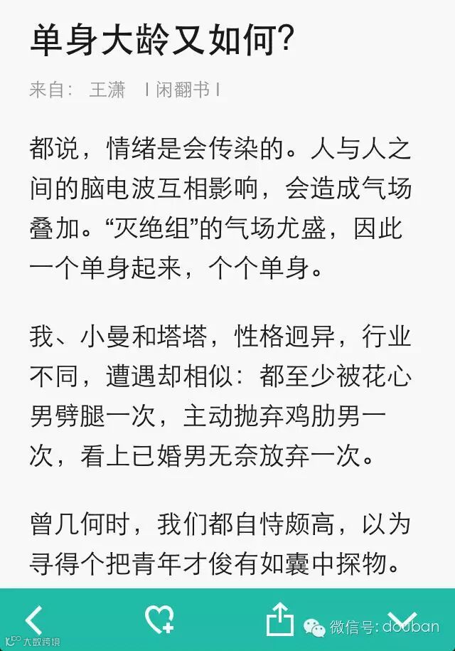 这是豆瓣一刻7月22日推送的精选内容之一,情侣尚且还要面对相处中的磕磕碰碰,单身大龄也自有它的好处。下载「一刻」App~ 丰富你生活的每一刻,分享还可能有礼相送:)