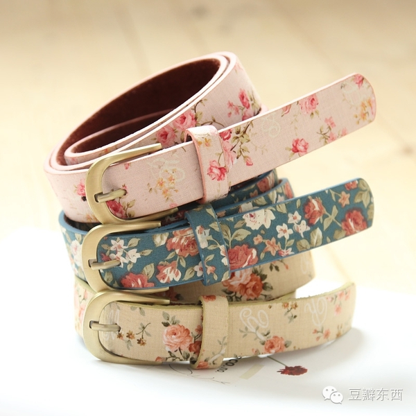 4、夏日清新牛皮底碎花腰带