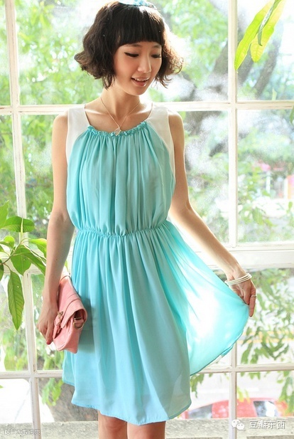 3、出彩单品:简洁纯色连衣裙。夏天越清凉的颜色越容易受到欢迎,而越简洁大方却又不失质感的款式,搭配一个小包,简直不能再夏日。