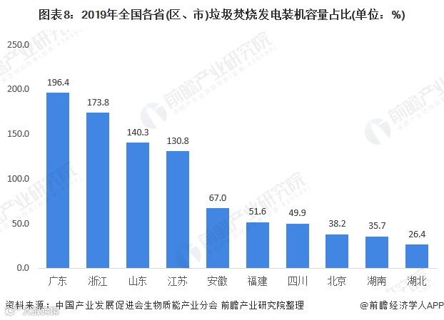 垃圾焚烧发电项目主要集中在华东、华南地区。经济相对发达的华东地区发展规模较大,占全国垃圾发电总装机容量的50%以上。