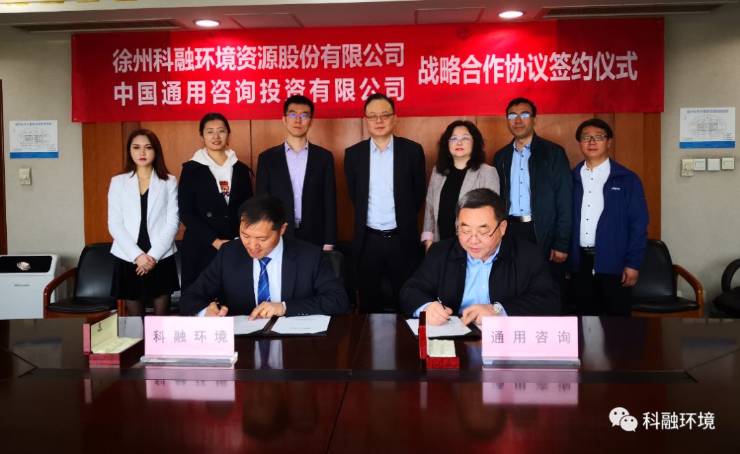 2019年4月16日,中国通用咨询投资有限公司(以下简称“通用咨询投资公司”)与徐州科融环境资源股份有限公司(以下简称“科融环境”)签署了战略合作协议。出席此次签约仪式的有中国通用咨询投资有限公司党委书记、董事长栗冀同志,科融环境董事长毛军亮先生,及双方其他代表和工作人员。