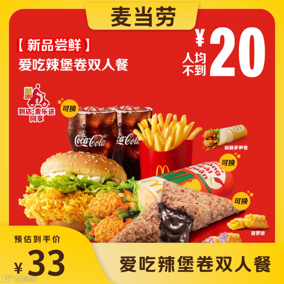 💰圈圈价33元吃辣堡卷双人餐啦!