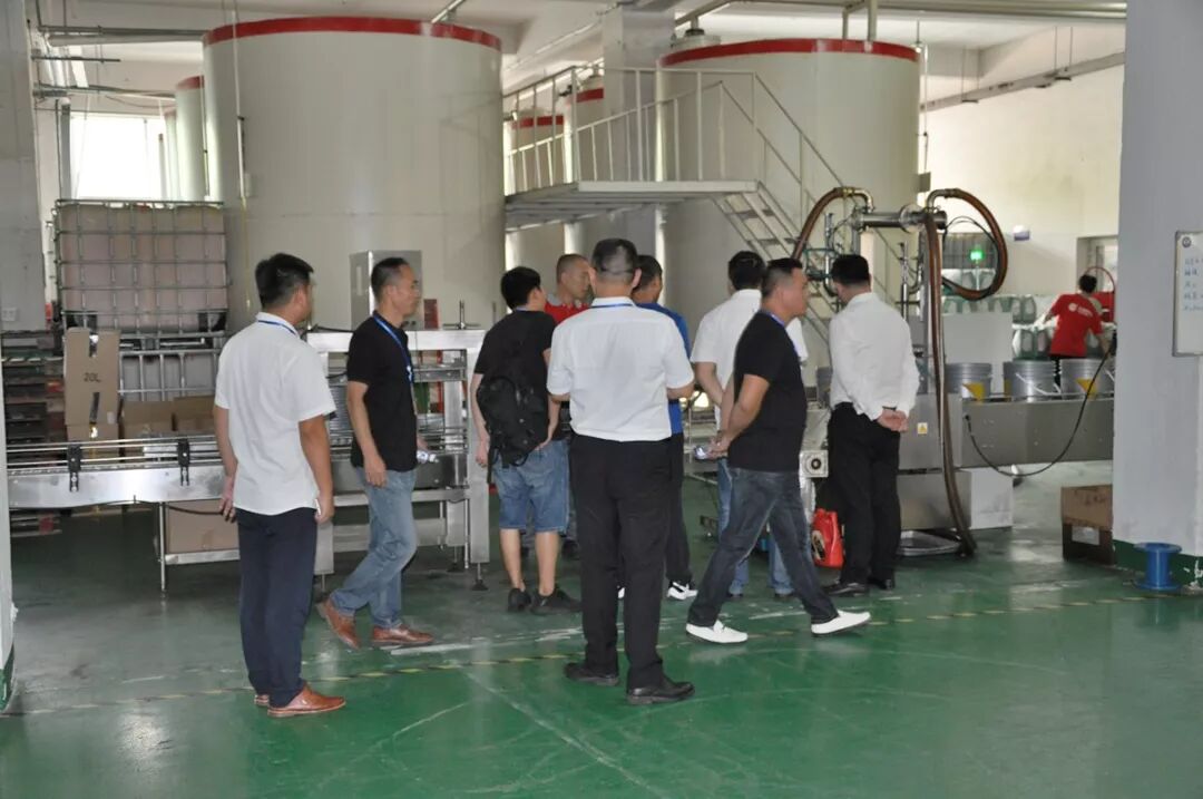 来宾们参观样品展览室。久润的产品包装设计、产品线的配置都得到了来宾们的好评。