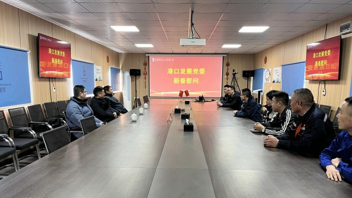 春节期间,港口发展党委书记张建平、董事长黄小刚代表港发党委、董事会和经营班子到靖江港慰问节日期间坚守一线的工作人员,为3家设备单位值守人员、2家辅助外包队伍以及靖江值班人员送来新年祝福和新春慰问,对大家的辛勤付出表示感谢。