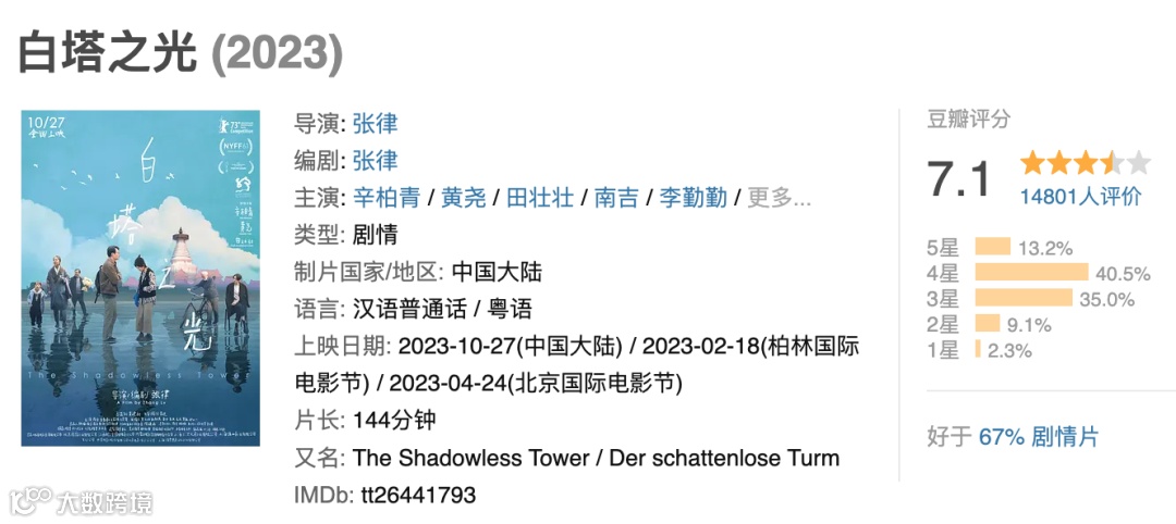 由张律编剧并执导电影《白塔之光》或许没有引起大规模的票房狂潮,但却以其独特的故事情节和情感表达赢得了豆瓣评分7.1分的高分。这部2023年上映并在国内外各大电影节提名获奖的文艺电影,以其细腻的画面和深刻的情感描绘,讲述了一个关于孤独、爱与寻找的故事。