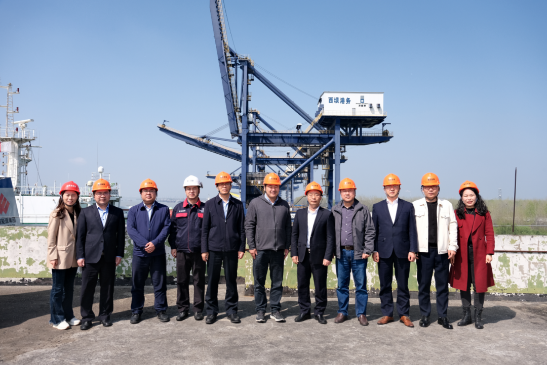 毛总一行调研了西坝码头作业现场,参观了西坝智慧化展厅,详细了解了港口板块发展历程、投资拓展、南京西坝码头工艺流程及生产经营、绿色智慧港口创建等情况。