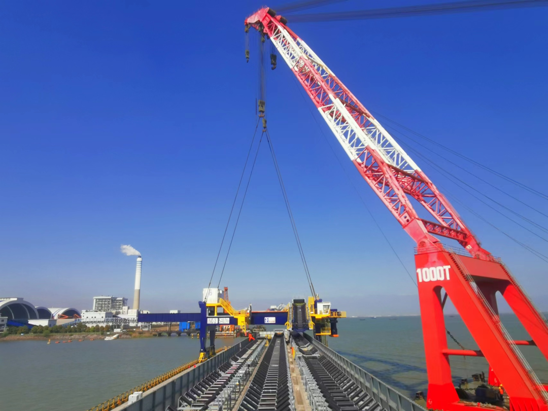 2023年4月2日,深国际港口靖江项目1#、3#装船机在主码头平台平稳“着陆”,顺利对接码头轨道,标志靖江项目首批2台装船机实现成功吊装。