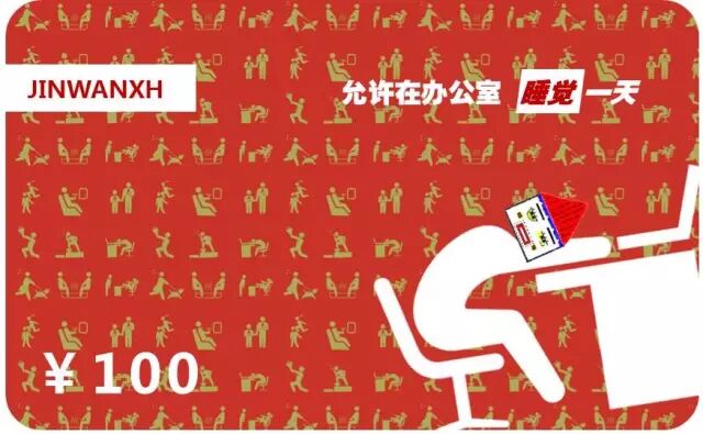 ➤奖项详细:员工可在2016年内任一工作日使用该卡片,使用后可在办公室内想睡就睡,办公室内任何人员不得打扰。提示:请勿裸睡。