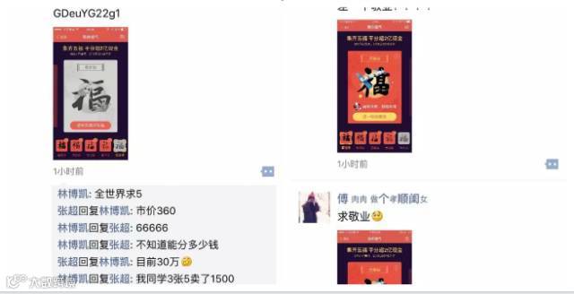 稀缺了,就会存在市场。万能的某宝,开始囤积福并开始卖福了,卖的就是敬业福,让我们看看它的价格——