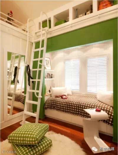 床的空间完全被省出来了,而且很舒服,很实用的小空间创意利用。