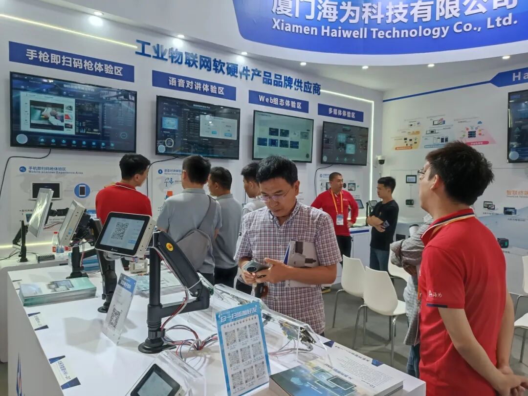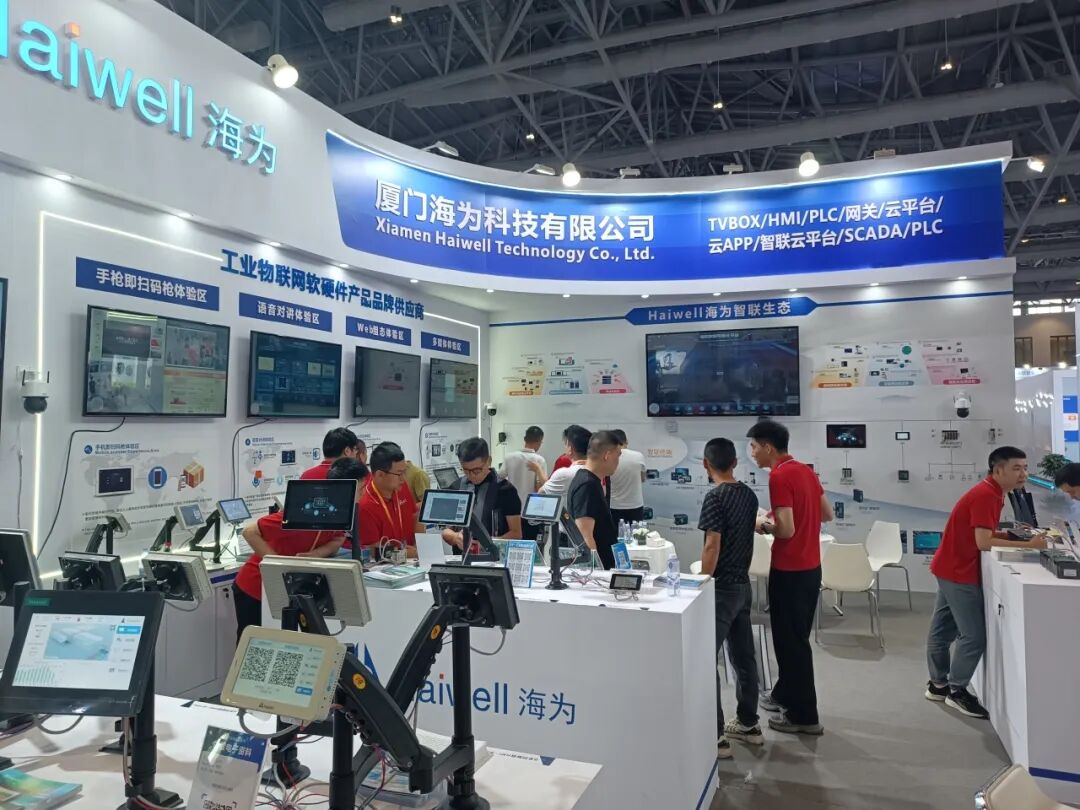 在展会上,我们展示了公司在技术创新的成果,我们的海为智联中枢(大屏控制器)TVBOX可以通过局域网/互联网对HMI、网关、SCADA、智联PLC、摄像机等画面进行集中监控,可合并多个设备或摄像头画面同时监控,还能以精美的可视化大屏展示设备、报警、视频、监控等信息,以及提供了欢迎大屏功能,有力的提升了企业形象。