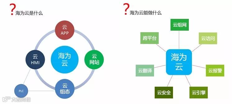 可能有人会问什么是海为云?简单来说海为云就是为自动化行业提供的一整套云服务解决方案。产品涵盖海为云、海为云APP、海为云网站、海为云组态很海为云HMI。那海为云能做什么?下面的图告诉您。