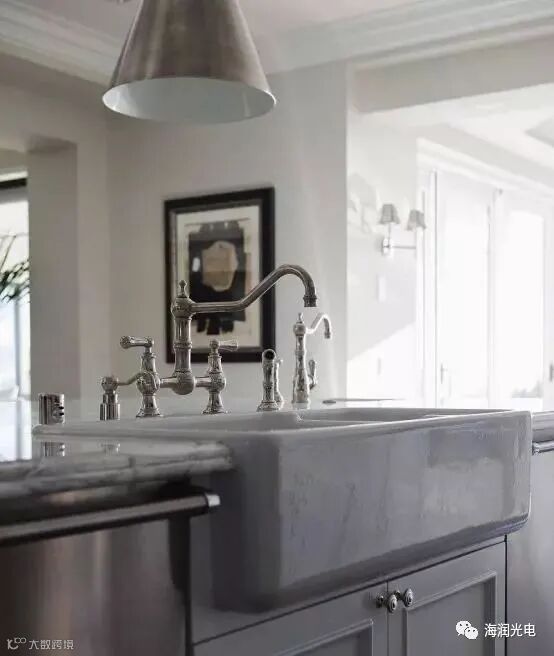 到了晚上如果要用厨房的话觉得光线不够可以在水槽上方装一些防雾射灯或者装饰性强一点的小吊灯来增强光线。