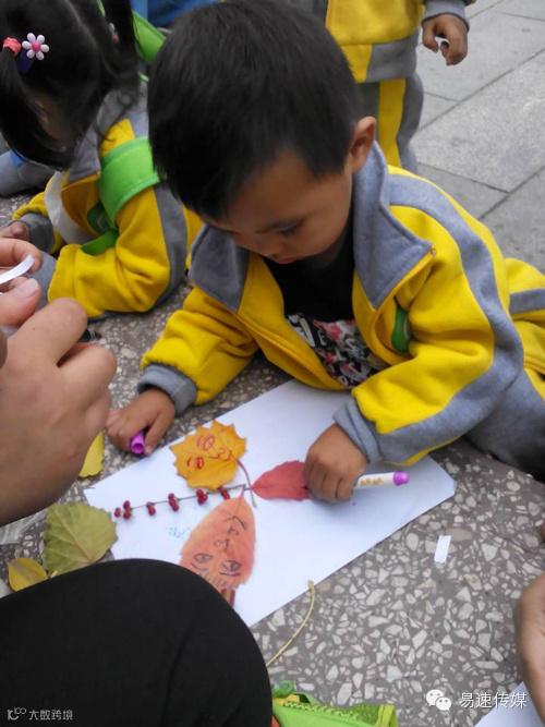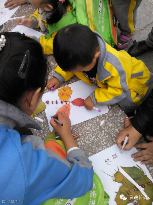 五、活动内容: 1、老师带领幼儿乘坐公交到达目的地 2、进行周围环境观察、并进行环境介绍。介绍目的地名称、让幼儿知道他们所在地点。 3、老师组织小朋友们一边游玩,一边拾捡、搜集树叶,搜集完毕选择场地,李廷霞老师分发颜料与纸张,在老师指导下将捡回的树叶涂上漂亮颜色,也可拼贴成漂亮画面,描绘出美丽的世界。老师帮幼儿签上作品名称、姓名、日期,留作纪念。 4、整理收集作品后,小朋友之间可以分享自己带来的食物,吃完后老师组织和小朋友一起将清理垃圾。 5、教师组织幼儿来到刻有《千字文》的石碑面前齐声诵读 6、组织幼儿自由参加其他活动,如喂鸽子等。 7、乘坐公交回园