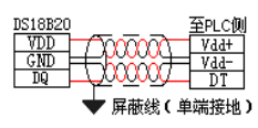 H04DT小巧方便,接线简单。其配套使用的DS18B20数字量温度传感器,具有体积小,硬件开销低,抗干扰能力强,精度高,可精确到0.065℃,接线方便等特点。下面图是DS18B20与海为H04DT模块接线图: