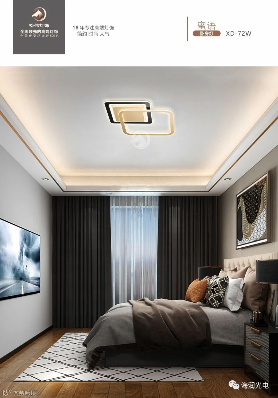 卧室是休息的地方,所以卧室的灯具建议不要太亮,可以选择吸顶灯,其它辅助的光源可以选择壁灯、台灯等。在安装卧室灯具的时候,注意不要安装在镜子的正上方,那样会造成眩光,会对睡眠造成严重的影响。