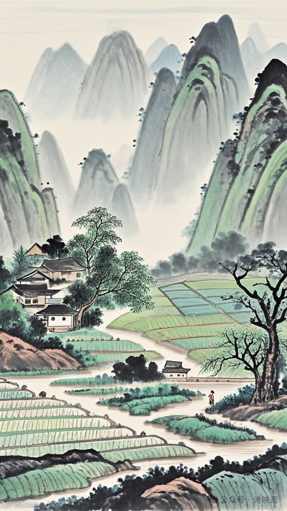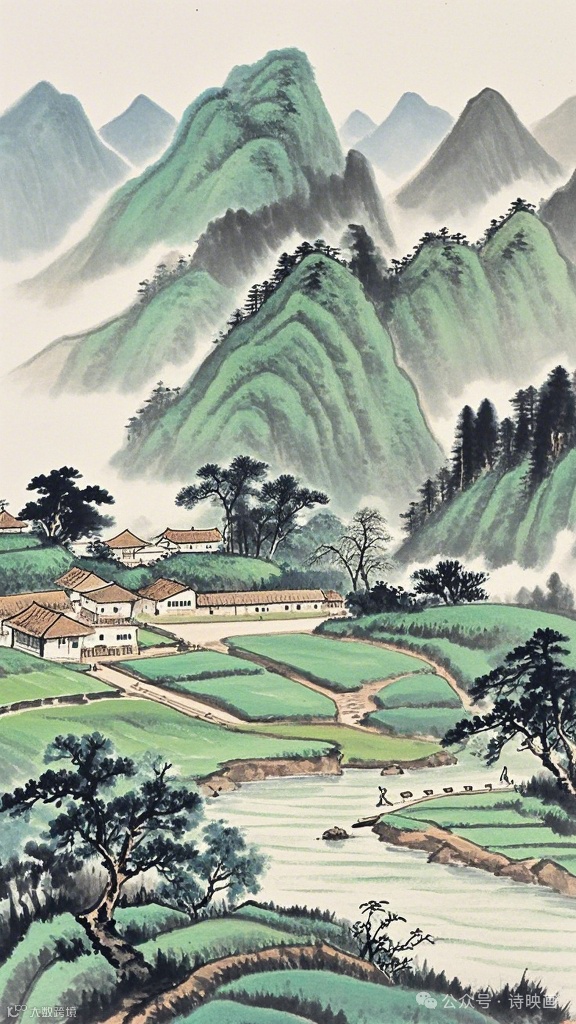 诗中描绘的乡村景色优美,意境深远。山峦、水流、柳树、花朵等自然景观相互映衬,构成了一幅美丽的画卷。同时,诗人通过对乡村生活的描写,营造出一种宁静、和谐的氛围,让人心生向往。