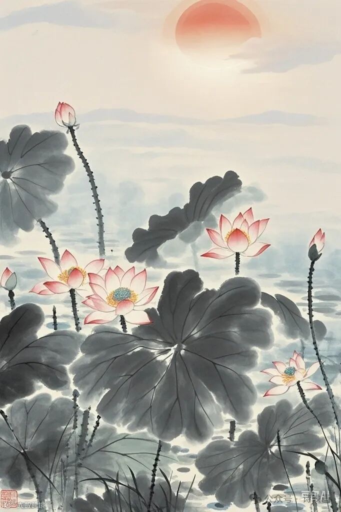 诗人运用强烈的色彩对比,描绘出一幅大红大绿、精彩绝艳的画面。“接天” 形容莲叶的广阔,仿佛与天空相接,营造出无边无际的碧绿之感,展现了西湖莲叶的壮美;“映日” 则突出了阳光照耀下荷花的鲜艳娇红。这两句诗中,莲叶的 “碧” 和荷花的 “红” 相互映衬,色彩鲜明,给人以强烈的视觉冲击。
