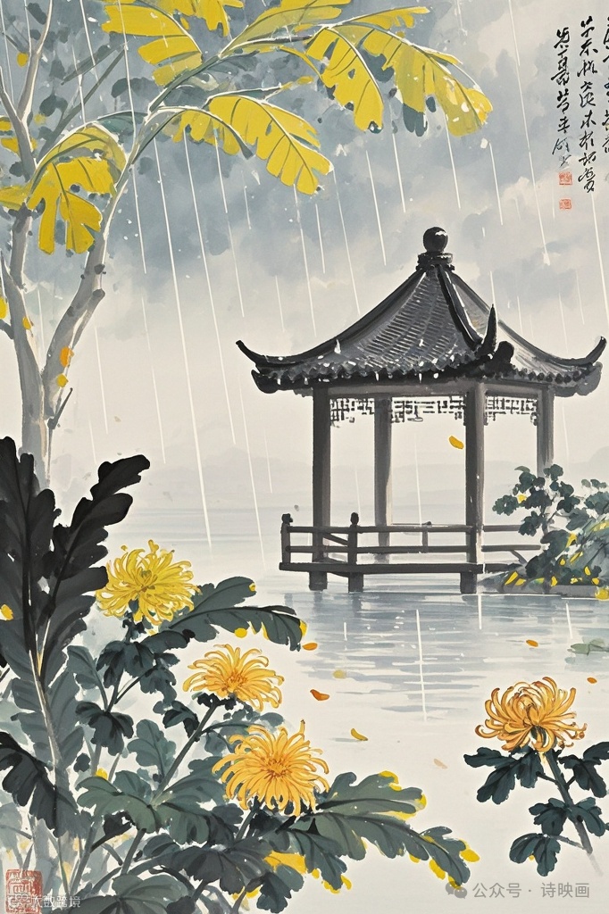 雁啼红叶天,人醉黄花地,芭蕉雨声秋梦里。