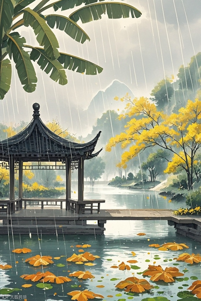 芭蕉叶大,雨点打在上面声音清脆,在古典文学里常被用来烘托愁绪。秋雨打芭蕉的声音进入游子的秋梦之中,暗示着思乡之情已深入到游子的梦境里,即使在睡梦中也无法摆脱,进一步深化了思乡的主题。曲中的景色描写如西风、雁、红叶、黄花、芭蕉雨声等,无一不是为了烘托出游子思乡的愁苦情绪。这些景色相互交织,构建出一幅凄美而又充满哀愁的秋景图,使思乡之情更加浓郁。